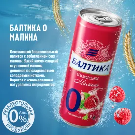 Попробуйте Балтика №0 Безалкогольное Малина Банка 0,45 л уже сегодня и наслаждайтесь освежающим вкусом без алкоголя!"