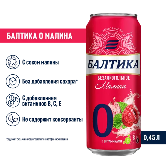 вода питьевая очищенная, солод пивоваренный ячменный светлый, ячмень пивоваренный, сахар, регулятор кислотности лимонная кислота, солодовый экстракт, ароматизатор пищевой натуральный «Малина», сок морковный концентрированный, сок концентрированный из малины, витаминный премикс (витамин Е, витамин В1, витамин В2, витамин В6, ниацин, фолиевая кислота, пантотеновая кислота, биотин, витамин В12, витамин С), хмелепродукты
