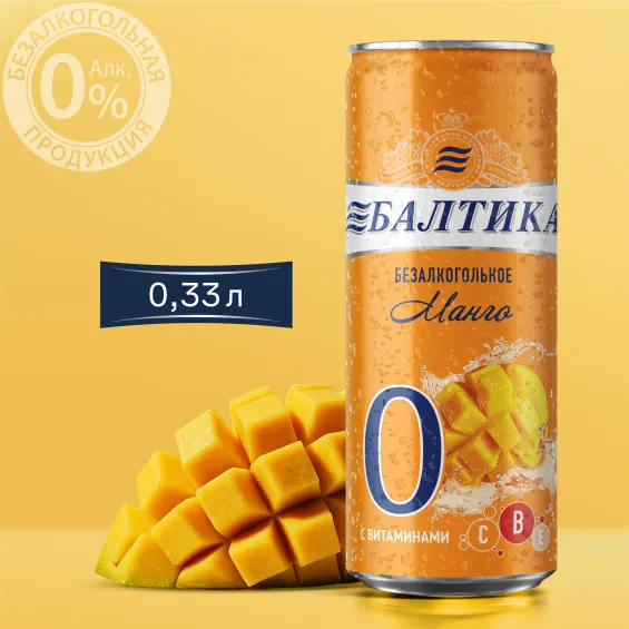 вода питьевая очищенная, солод пивоваренный ячменный светлый, регулятор кислотности лимонная кислота, солодовый экстракт, ароматизатор пищевой «Манго» (регулятор кислотности уксусная кислота, антиокислитель аскорбиновая кислота), растительный экстракт (экстракт сафлора), сок черной моркови концентрированный, концентрированный сок из манго осветленный, витаминный премикс (витамин Е, витамин В1, витамин В2, витамин В6, ниацин, фолиевая кислота, пантотеновая кислота, биотин, витамин В12, витамин С), хмелепродукты.
