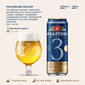 Формат 0,33 л в банке делает его удобным для поездок, пикников и повседневного использования. Пиво доступно в фирменных магазинах при заводах «Балтика», . Вы можете заказать его заранее и воспользоваться удобным самовывозом.