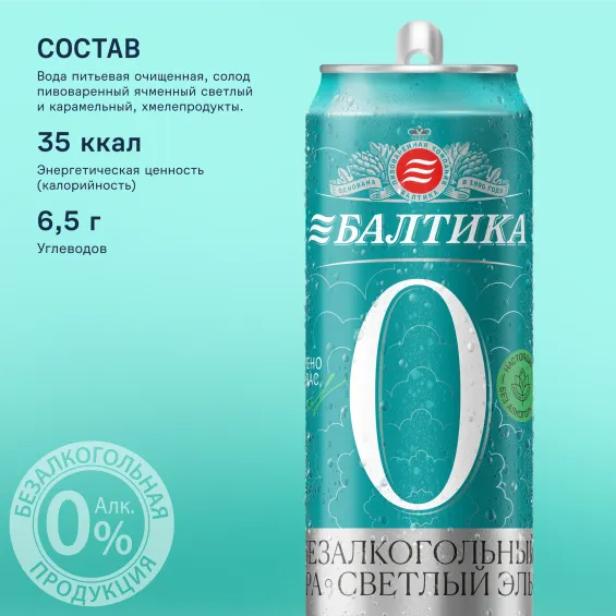 Балтика №0 Безалкогольный IPA Светлый Эль Банка 0,45