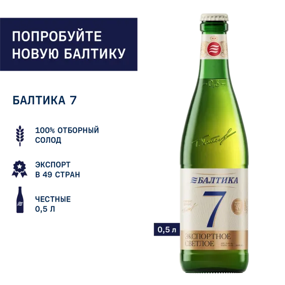 Пиво «Балтика 7» сварено из лучших российских ингредиентов - отборного 100% солода и хмеля,