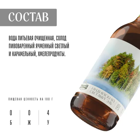 вода питьевая очищенная, солод пивоваренный ячменный светлый и карамельный, хмелепродукты.