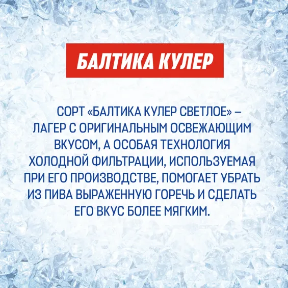 Сорт «Балтика Кулер» имеет оригинальный освежающий вкус и мягкую горечь в послевкусии.