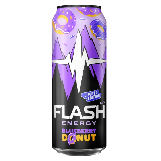 вода питьевая очищенная, сахар, регуляторы кислотности: лимонная кислота и цитрат натрия, концентрат для напитков «Энерджимикс» (таурин, витамин С, мальтодекстрин, кофеин, ниацин, пантотеновая кислота, витамин B6, фолиевая кислота), ароматизатор пищевой эмульсионный «Ваниль» (стабилизаторы: Е414, Е444, Е445), ароматизаторы пищевые, сок концентрированный из черники, красители: Е122 и Е133, консерванты: сорбат калия и бензоат натрия.