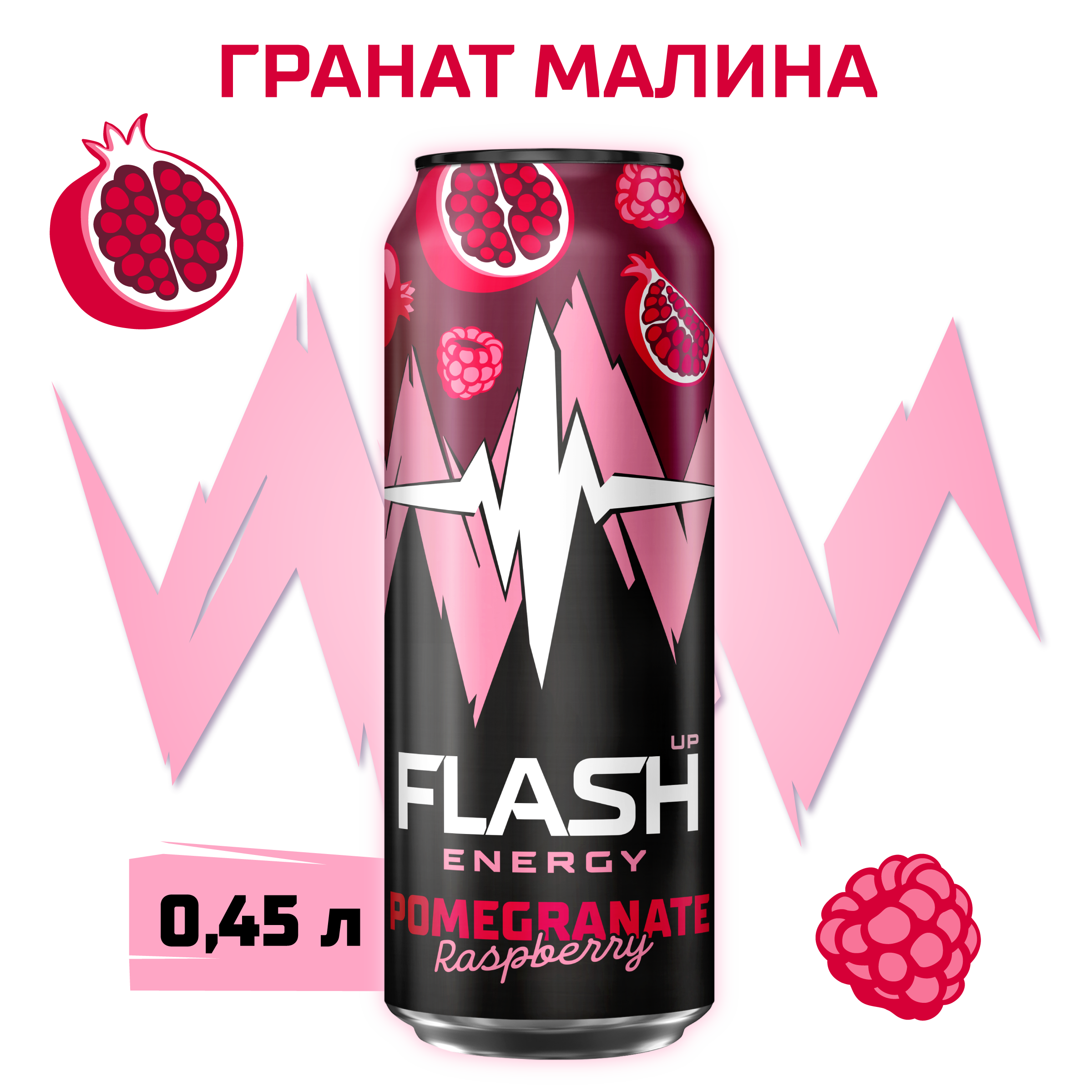 Новый сочный вкус Flash Up Energy Pomegranate-Raspberry. Насладитесь вкусом спелого граната и нежной малины! Сочный микс акцентного и терпкого граната в сочетании со свежей малиной зарядят бодростью на весь день.