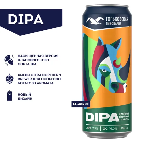 Горьковская Пивоварня Двойной Индийский Пэйл Эль — для тех, кто ищет насыщенные и яркие вкусы. Открой для себя новое измерение пива!"