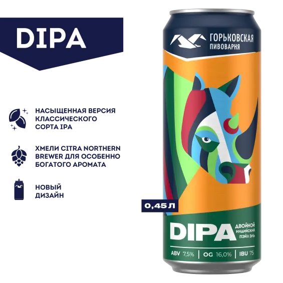 Горьковская Пивоварня Двойной Индийский Пэйл Эль — для тех, кто ищет насыщенные и яркие вкусы. Открой для себя новое измерение пива!"