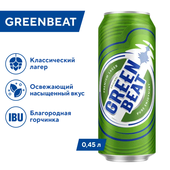Приобрети GREENBEAT Банка 0,45 и наслаждайся чистым вкусом свежести!"
