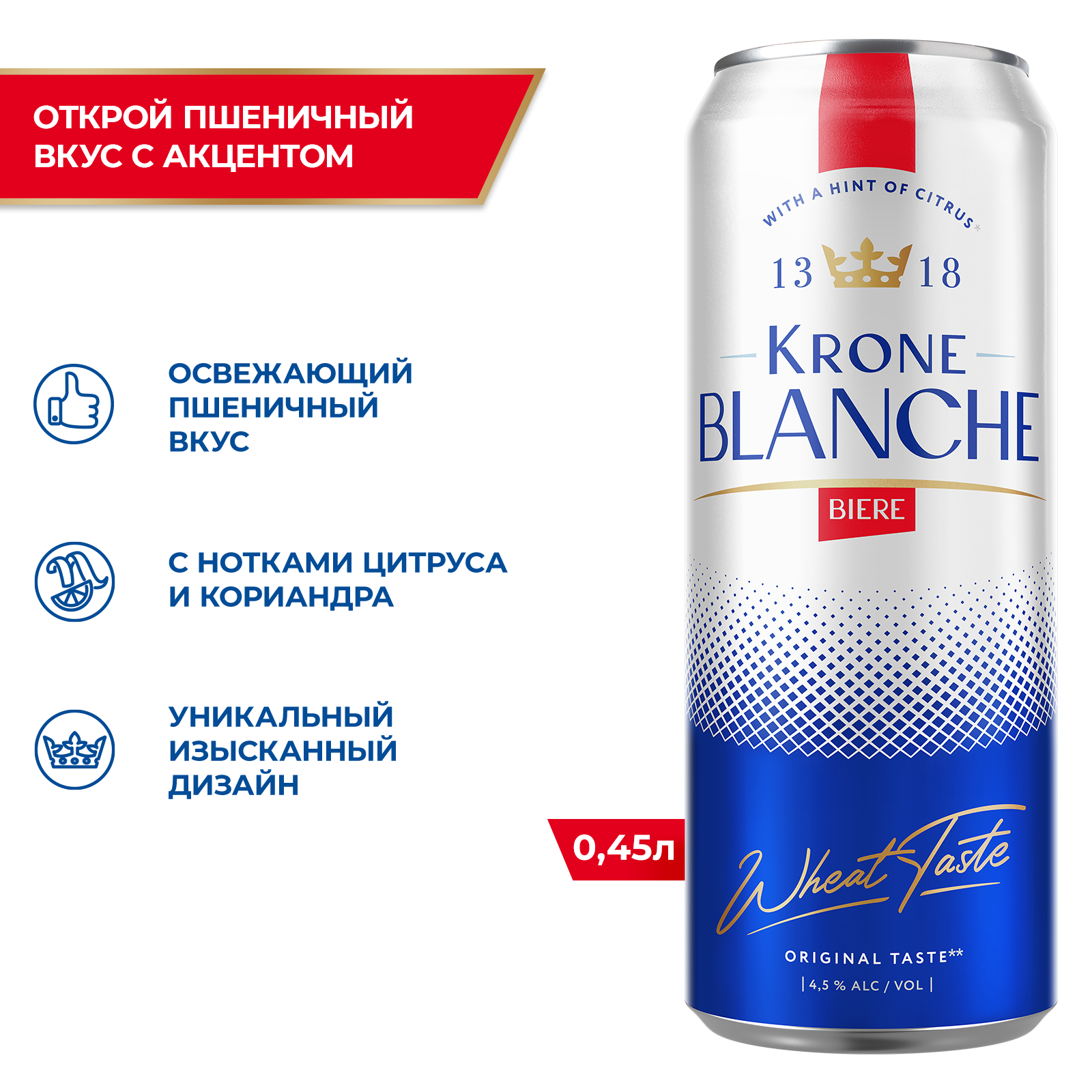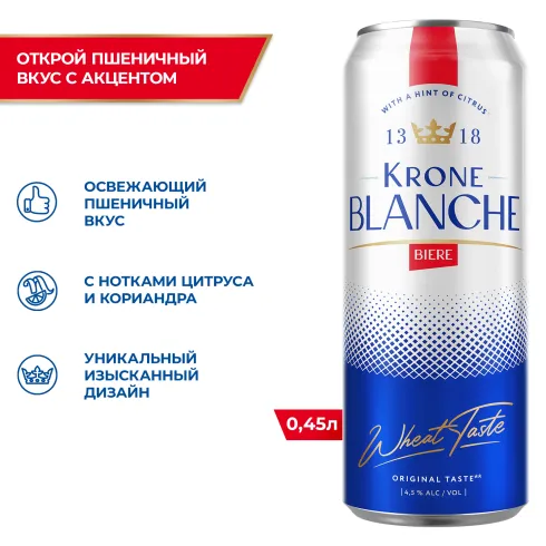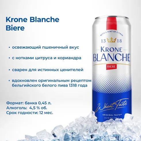Освежающий пшеничный вкус с нотками цитруса и кориандра, вдохновленный оригинальным рецептом Blanche Beer 1318 года.