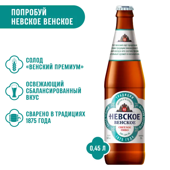Невское Венское — это пиво с подробнее"Невское Венское Бутылка 0,45 – насыщенный вкус венского пива!
