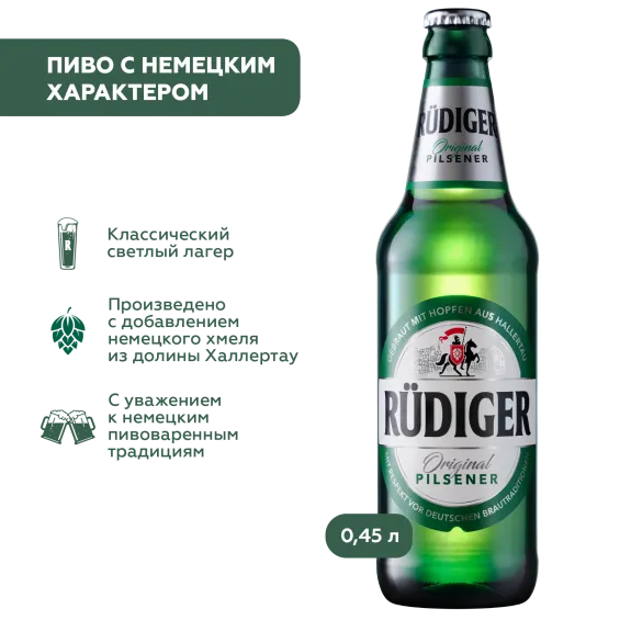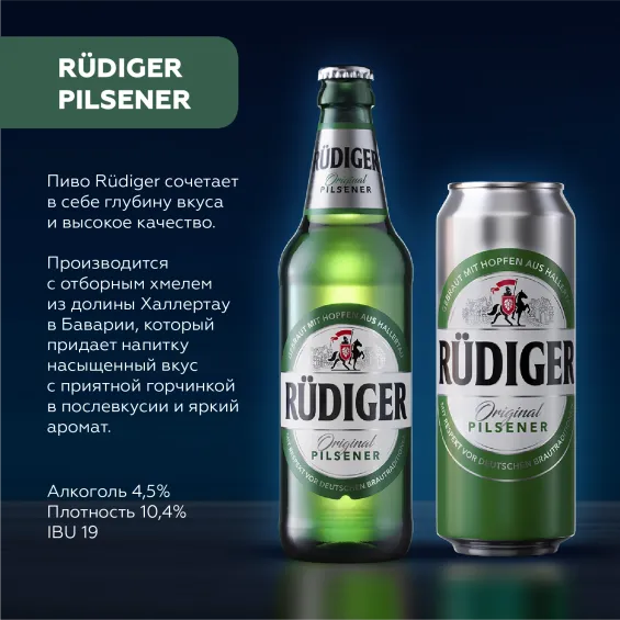 Приобрети Rudiger Original Pilsener уже сегодня и наслаждайся настоящим вкусом пилснера!"