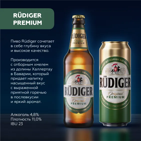 Приобрети Rudiger Original Premium уже сегодня и наслаждайся премиум пивом с насыщенным вкусом!"