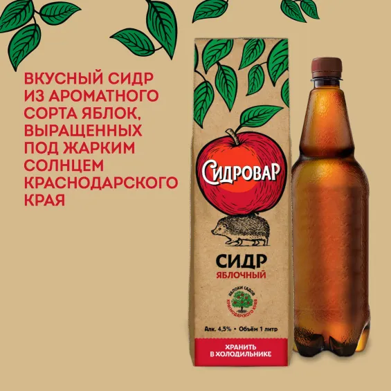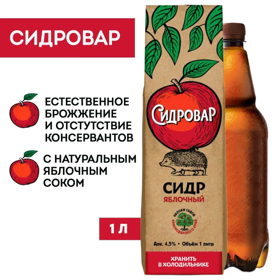 ПЭТ-упаковка объёмом 1 литр удобна для пикников, вечеринок или долгих встреч с друзьями. Сидровар Яблочный — это всегда свежий и качественный напиток с натуральным вкусом.