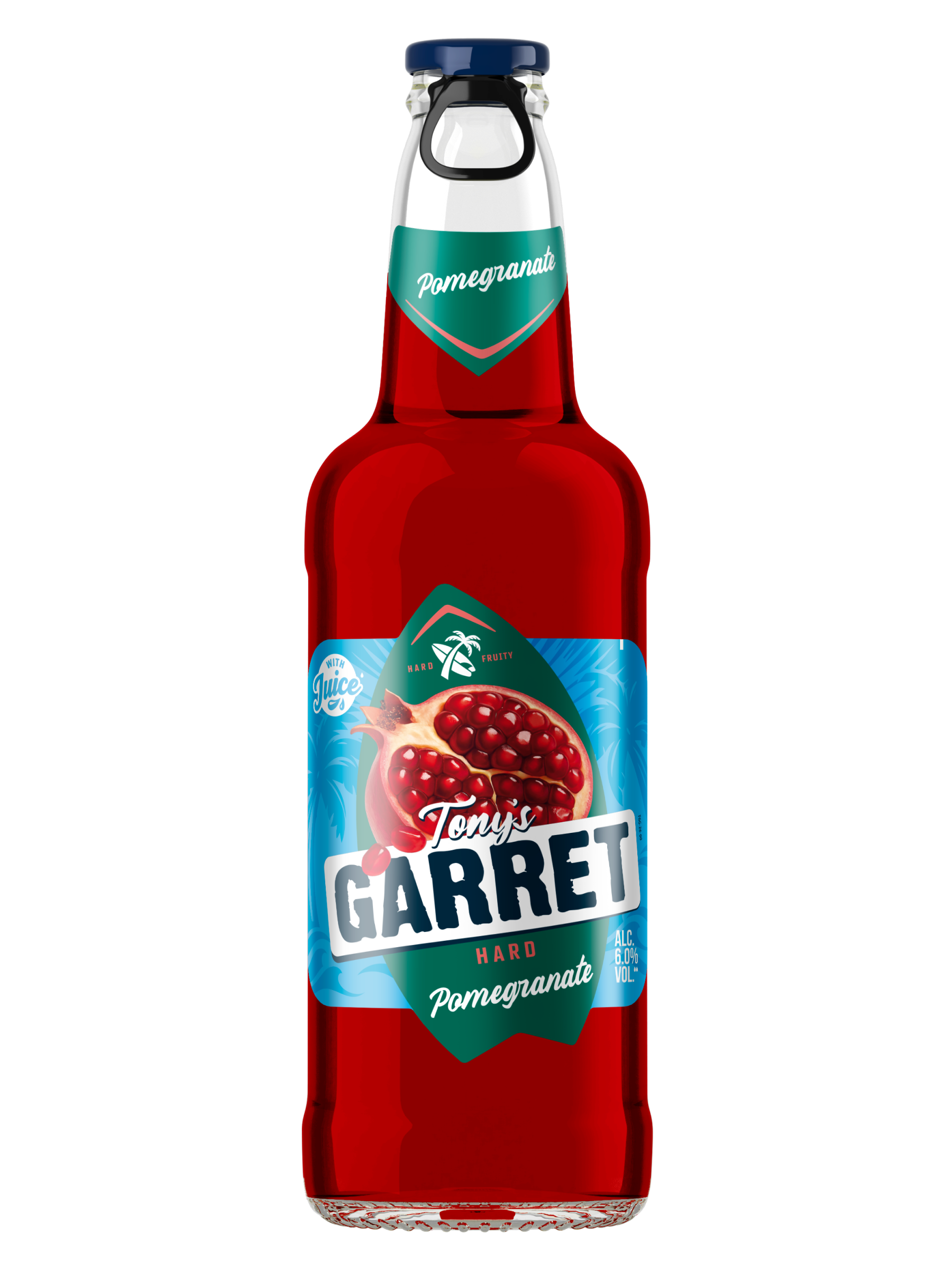 вода питьевая, солод пивоваренный ячменный светлый, сахар, регулятор кислотности лимонная кислота, сок черной моркови концентрированный, ароматизаторы пищевые, ароматизатор пищевой эмульсионный (стабилизаторы: E414, E444, E445, консерванты: Е202, Е211), сок концентрированный из граната, хмелепродукты.