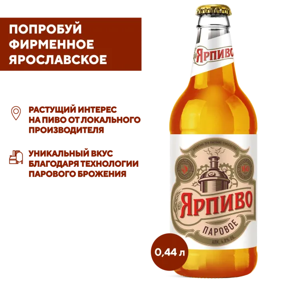Ярпиво Паровое Бутылка 0,44 в Воронеже – классическое пиво для повседневного отдыха. Оно сочетает подробнееЯрпиво Паровое Бутылка 0,44 в Воронеже – классическое пиво для повседневного отдыха. Оно сочетает приятный солодовый вкус и аккуратную хмелевую горчинку, благодаря чему подходит как для самостоятельного употребления, так и в сочетании с закусками. Ярпиво Паровое Бутылка 0,44 хорошо подходит к мясным блюдам, сырам, снекам и блюдам на гриле. Пиво производится по стандартам пивоваренной компании Балтика с использованием качественных ингредиентов. Купить Ярпиво Паровое Бутылка 0,44 в Воронеже с самовывозом в фирменном магазине Балтика легко — оформи заказ онлайн и забери его без ожидания доставки.